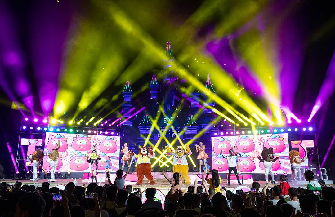 當(dāng)圓月掛上樹梢,華燈初上,燈火點(diǎn)綴下的方特景致別有一番風(fēng)味。