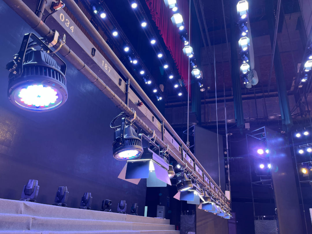 舞臺(tái)燈光采用高顯色指數(shù)LED光源成像燈、聚光燈,極高的色彩還原性讓演員、舞美更加真實(shí)的展現(xiàn)給觀眾,同時(shí)劇場(chǎng)配置了三合一電腦搖頭燈與四合一搖頭切割燈,以光執(zhí)筆,讓每一束光雕刻舞臺(tái),每一道影勾勒舞臺(tái),每一種顏色烘托舞臺(tái),予以情緒的表達(dá),其獨(dú)特的光斑切割功能,讓每一場(chǎng)劇目更具時(shí)空穿透力。