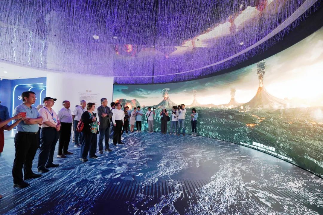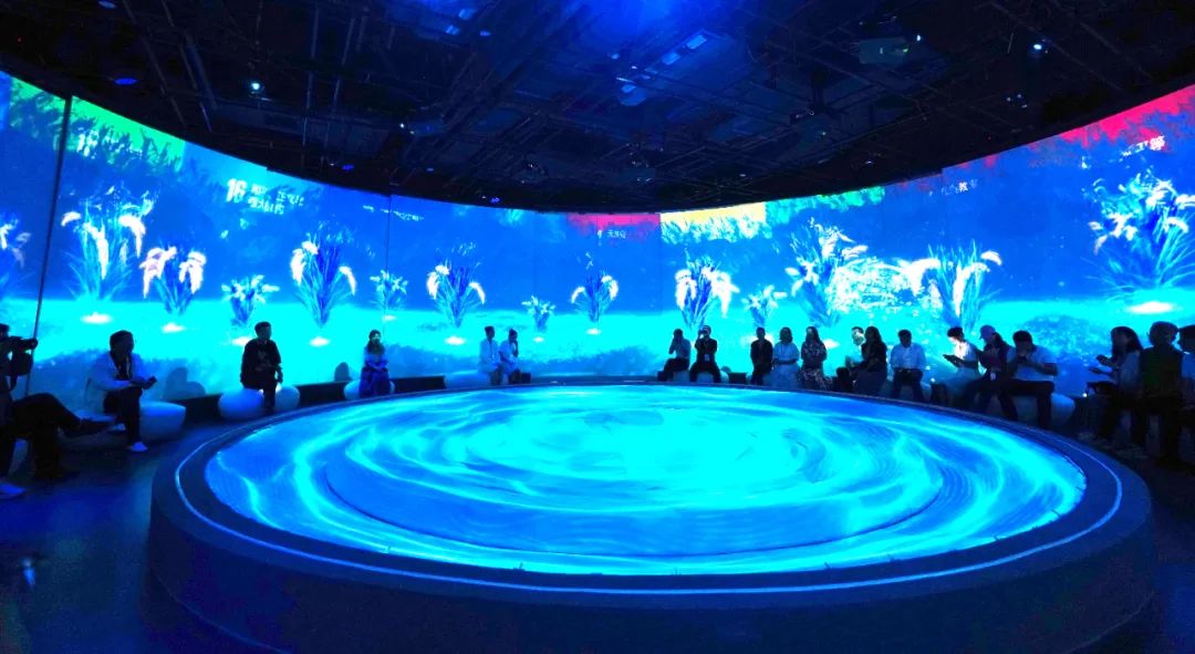 內(nèi)部展示廳建筑面積2840平米,通過(guò)科技、教育與文化的深度融合,綜合運(yùn)用聲、光、電等現(xiàn)代科技手段,并借助5G、3D MAPPING、AI智能、CAVE沉浸式系統(tǒng)、體感互動(dòng)等新媒體技術(shù)進(jìn)行集成展示,創(chuàng)新應(yīng)用展演融合新形式,營(yíng)造360°沉浸式、互動(dòng)性觀展體驗(yàn),彰顯“郴州好水·生活更美”的價(jià)值內(nèi)涵。