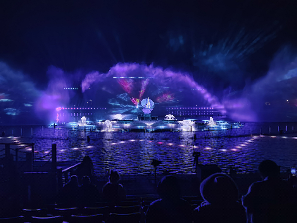 擔(dān)綱演藝總制作,絢爛燈光、水上噴泉、裸眼3D投影、動感升降福船看臺等高科技手段,營造沉浸式觀演體驗