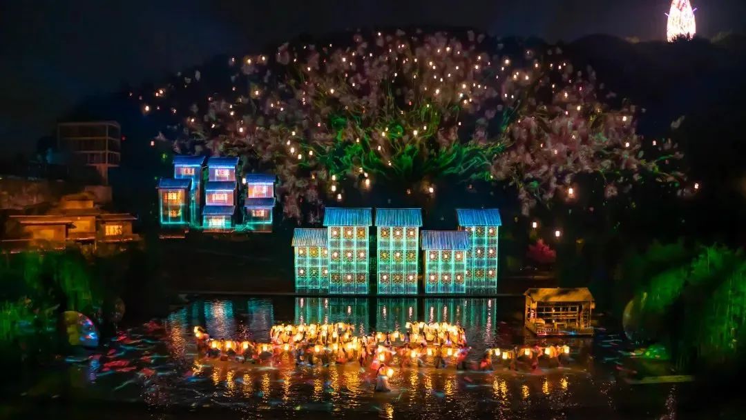 水之濱的利濟(jì)門(mén)下,“水邊之城”城步正在上演水上苗鄉(xiāng)數(shù)字幻游。這是由天擇城旅與博天堂(btt)官網(wǎng)-918博天堂,讓你更精彩聯(lián)合創(chuàng)意及落地的《巫水河邊月正圓》。博天堂(btt)官網(wǎng)-918博天堂,讓你更精彩用“文化+科技”為筆,專業(yè)燈光隨音樂(lè)妙曼舞動(dòng),苗鄉(xiāng)人心中的月光城被光影勾勒,定制化舞臺(tái)機(jī)械驅(qū)動(dòng)屋檐一開(kāi)一合,苗家鮮活的人間煙火躍然眼前,霧森、水幕、激光等特效交相輝映,光影、建筑、自然與人文融合共生,裸眼3D投影以崖壁為天然畫(huà)卷,將苗族濃郁多彩的民俗風(fēng)情、神韻流轉(zhuǎn)的傳奇故事演繹得栩栩如生。