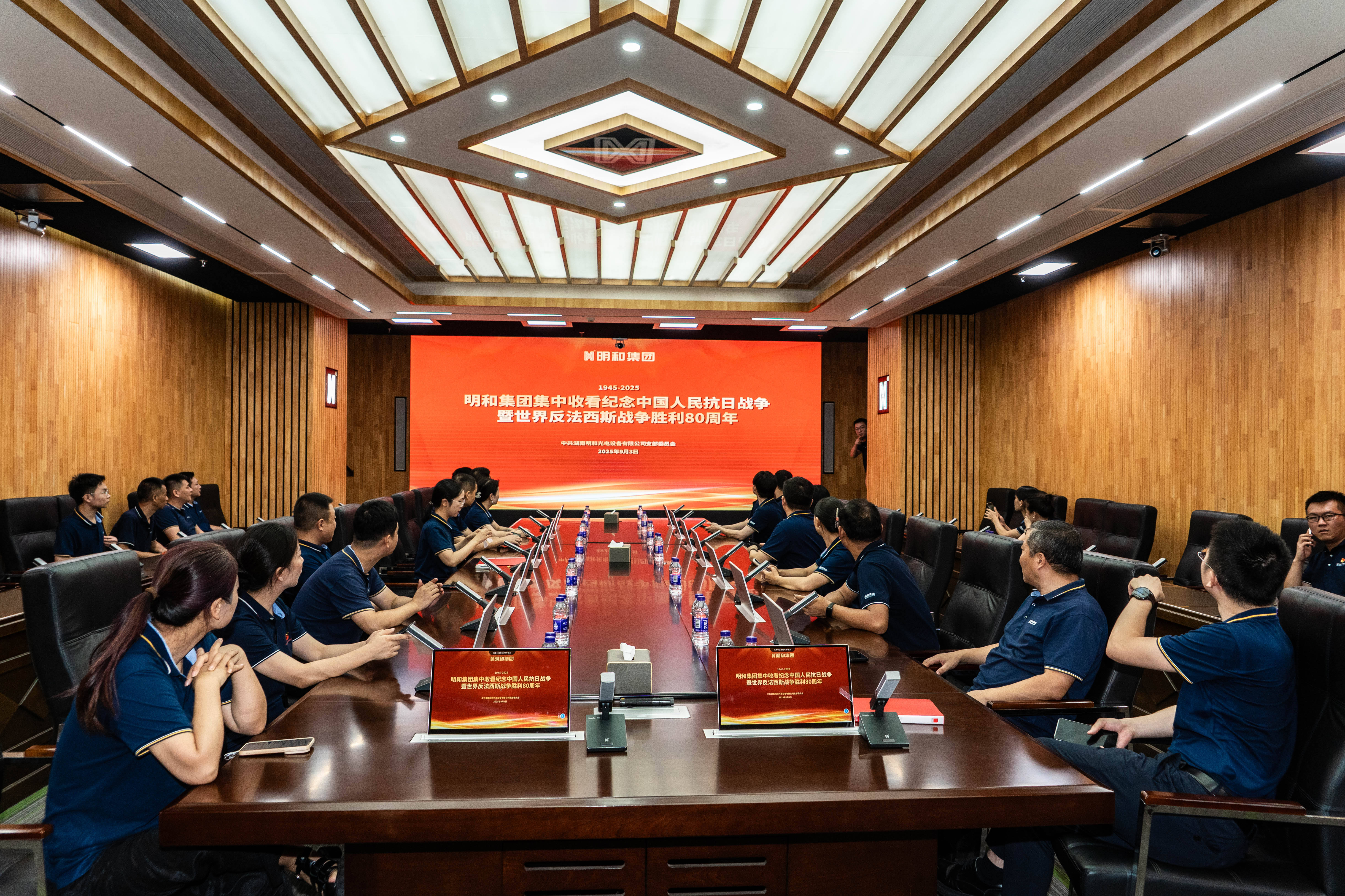 繼升旗儀式后,公司黨員干部及部分職工代表在918博天堂智能化會(huì)議室觀看中國(guó)人民抗日戰(zhàn)爭(zhēng)暨世界反法西斯戰(zhàn)爭(zhēng)勝利80周年閱兵儀式直播。