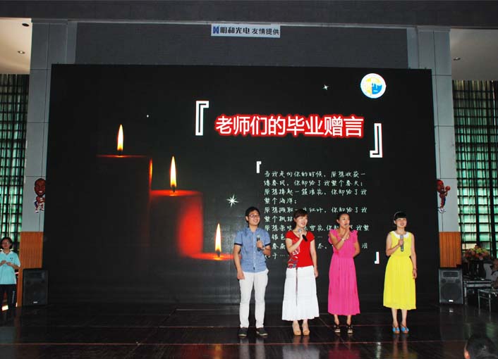 整場(chǎng)畢業(yè)典禮在熱烈的氛圍中圓滿結(jié)束。因?yàn)橛辛藢W(xué)子們的朝氣而青春四溢,因?yàn)橛辛藥熒鷤兊那檎x而真摯感人,因?yàn)橛辛薒ED屏的炫麗效果而畢生難忘!