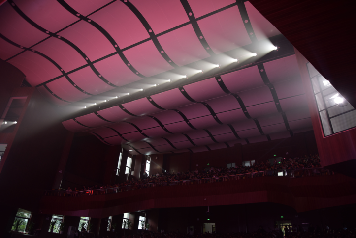 ▲畢業(yè)生們的表演活力四射,舞臺燈光璀璨交織,確保觀眾的最佳視覺體驗。禮堂基礎(chǔ)光采用了200W LED 數(shù)字成像燈、324W LED數(shù)字平板燈、300W LED數(shù)字聚光燈、2500W追光燈;效果燈采用162W LED大功率束光燈、280W電腦搖頭光束燈、324W LED變焦搖頭染色燈、1500W 搖頭成像切割圖案燈。